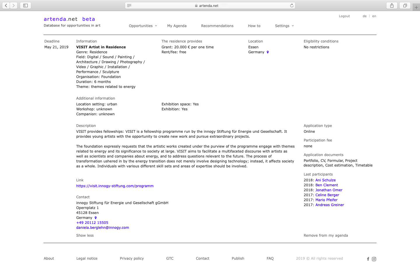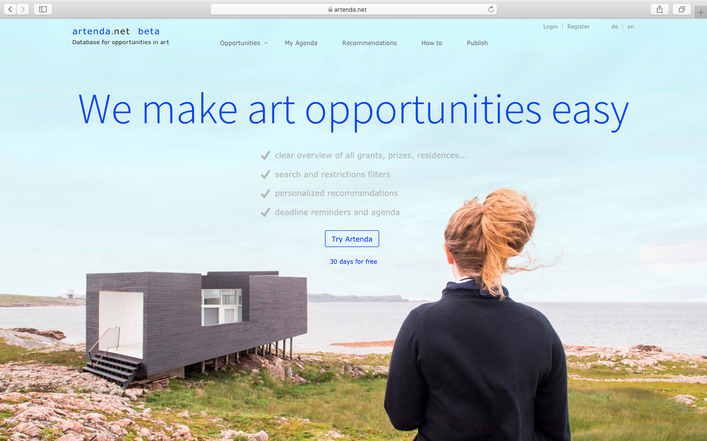 Artenda helps artists worldwide navigate the vast landscape of art opportunities by providing a comprehensive overview of high-quality international open calls, including residencies, competitions, fellowships, project grants, exhibitions and public art projects.